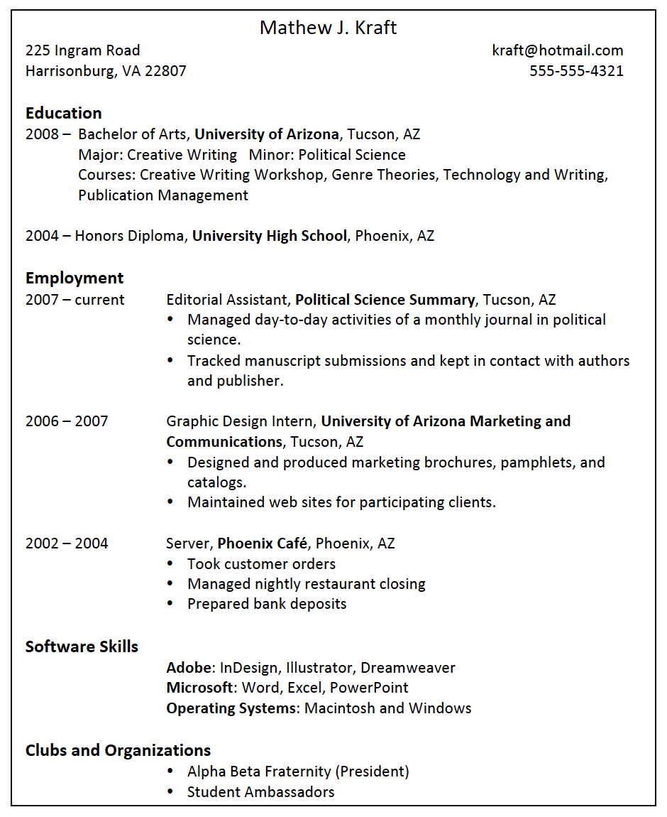 The example in Fig. 1 shows an unformatted resume. The lack of repetition, contrast, alignment, and proximity make the document unattractive as well as difficult to follow. There is no way to easily distinguish important information, like the applicant’s name and contact information. Sections run together, and no key ideas are clear.