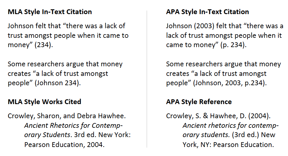 Writers using a specific style guide will emphasize different pieces of information. For example, citations in MLA emphasize the author as primary focus, while the APA style guide features dates (see Fig. 3). Style guides are dynamic documents, and they change to reflect evolutions in technology for both research and production. When MLA style was first developed, it did not include a style for referencing